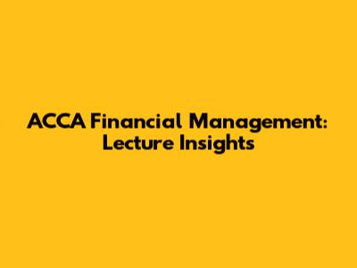 ACCA Financial Management: Lecture Insights