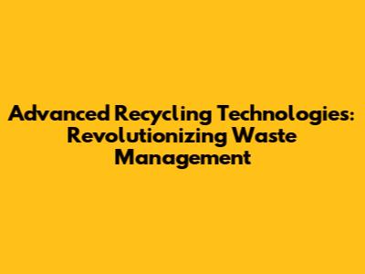 Advanced Recycling Technologies: Revolutionizing Waste Management
