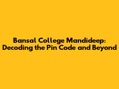 Unveiling Bansal College Mandideep: More Than Just a Pin Code