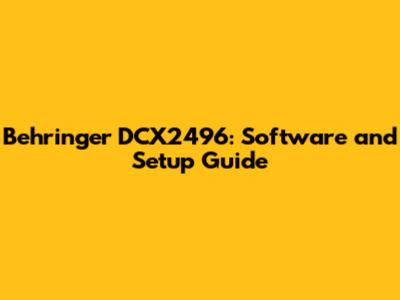 Behringer DCX2496: Software And Setup Guide