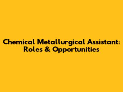 Chemical Metallurgical Assistant: Roles & Opportunities