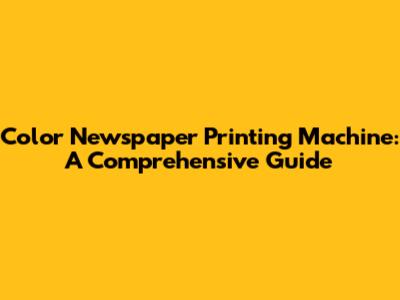 Color Newspaper Printing Machine: A Comprehensive Guide