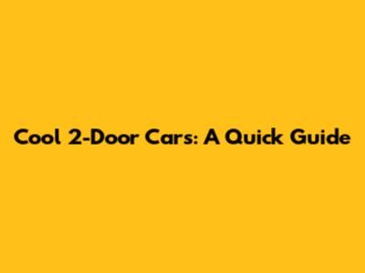 Cool 2-Door Cars: A Quick Guide