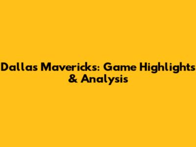 Dallas Mavericks: Game Highlights & Analysis