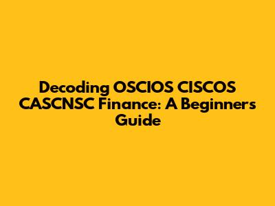Decoding OSCIOS CISCOS CASCNSC Finance: A Beginner's Guide