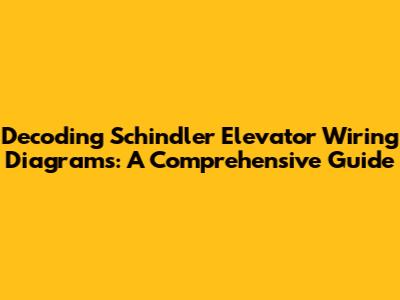 Decoding Schindler Elevator Wiring Diagrams: A Comprehensive Guide