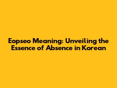 Deep Dive into the Eopseo Meaning: Core Concepts