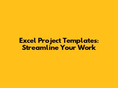 Excel Project Templates: Streamline Your Work