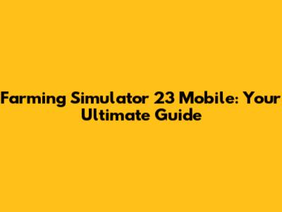 Farming Simulator 23 Mobile: Your Ultimate Guide