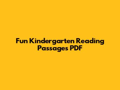 Fun Kindergarten Reading Passages PDF
