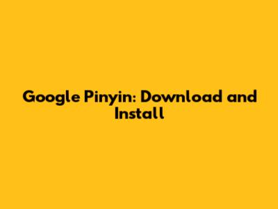 Google Pinyin: Download And Install