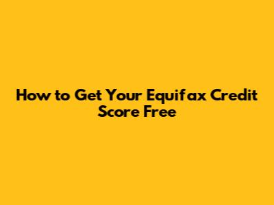 How To Get Your Equifax Credit Score Free