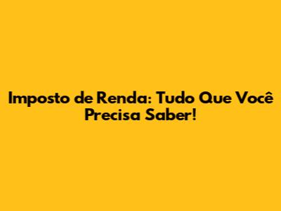 Imposto De Renda: Tudo Que Você Precisa Saber!