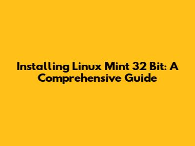Install Linux Mint 32 Bit: A Step-by-Step Guide