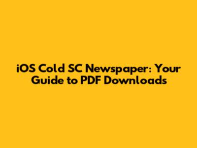 IOS Cold SC Newspaper: Your Guide To PDF Downloads