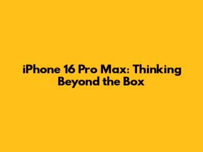 IPhone 16 Pro Max: Thinking Beyond The Box