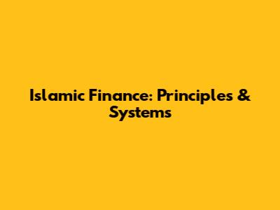 Islamic Finance: Principles & Systems