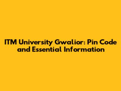 ITM University Gwalior: Pin Code And Essential Information