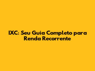 IXC: Seu Guia Completo Para Renda Recorrente