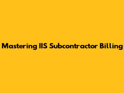 Mastering IIS Subcontractor Billing