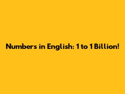 Numbers In English: 1 To 1 Billion!