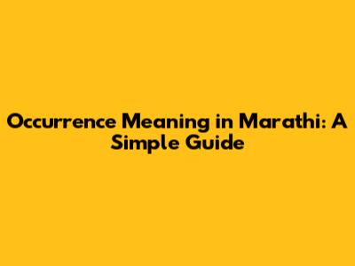 Occurrence Meaning In Marathi: A Simple Guide