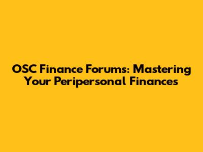 OSC Finance Forums: Mastering Your Peripersonal Finances