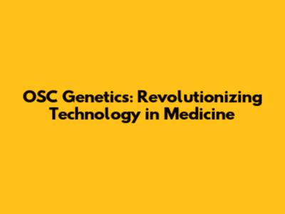 OSC Genetics: Revolutionizing Technology In Medicine