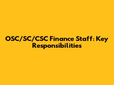 OSC/SC/CSC Finance Staff: Key Responsibilities
