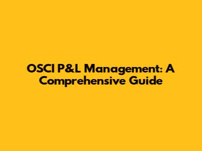 OSCI P&L Management: A Comprehensive Guide