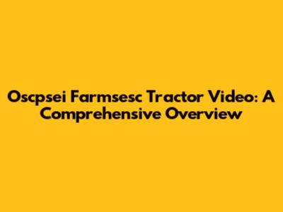 Oscpsei Farmsesc Tractor Video: A Comprehensive Overview
