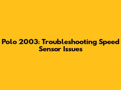 Polo 2003: Troubleshooting Speed Sensor Issues