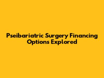 Hey guys! Let's dive into the nitty-gritty of Pseibariatric surgery financing. It's a big step, and understanding how to pay for it is super important, right? We're going to break down all the different avenues you can explore to make this life-changing procedure a reality. From understanding what exactly Pseibariatric surgery entails to exploring the various financial solutions available, this article is your go-to resource. We'll cover everything from traditional financing routes to more creative options, ensuring you have a clear picture of how to fund your journey towards a healthier you. Remember, knowledge is power, and when it comes to financing a significant medical procedure like Pseibariatric surgery, being well-informed can make all the difference in your decision-making process and ultimately, your success.