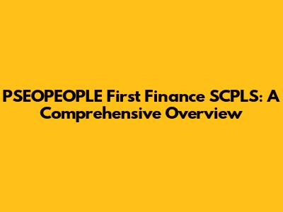 PSEOPEOPLE First Finance SCPLS: A Comprehensive Overview