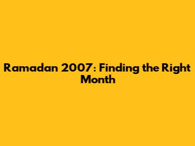 Ramadan 2007: Finding The Right Month