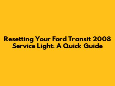 Resetting Your Ford Transit 2008 Service Light: A Quick Guide