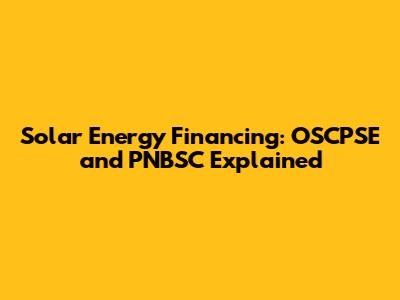 Solar Energy Financing: OSCPSE And PNBSC Explained