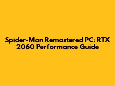 Hey everyone! So, you're looking to swing through the concrete jungle as the web-slinger in Marvel's Spider-Man Remastered on your PC, specifically with an RTX 2060, huh? Awesome! You've come to the right place. This guide is all about getting the best possible experience out of this fantastic game on your rig. We'll dive deep into the optimal settings, what to expect in terms of performance, and how to tweak things to get those sweet, sweet frames. Let's face it, Spider-Man Remastered is a visually stunning game, and experiencing it at its best is a must. And with the right setup and a little bit of know-how, you can definitely make it happen, even on the RTX 2060. We will also touch on the different settings, explain what they do, and how they impact performance. Plus, we'll cover some common issues you might encounter and how to fix them. So, grab your web-shooters, and let's get started!