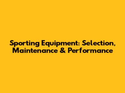 Sporting Equipment: Selection, Maintenance & Performance