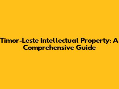 Timor-Leste Intellectual Property: A Comprehensive Guide