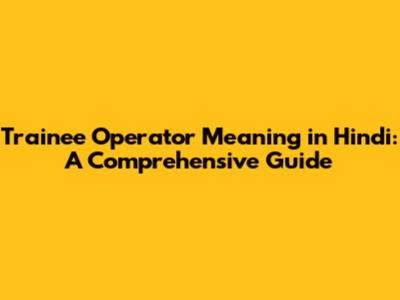 Trainee Operator: Hindi Meaning & Career Insights