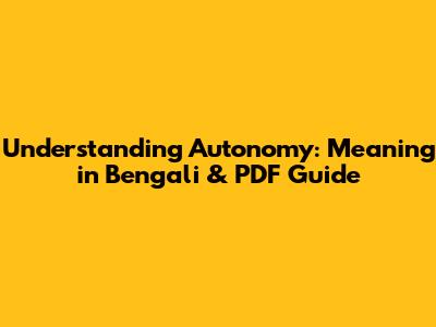 Understanding Autonomy: Meaning In Bengali & PDF Guide