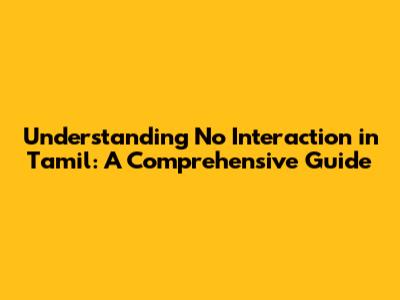 Understanding 'No Interaction' In Tamil: A Comprehensive Guide