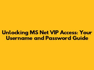 Unlocking MS Net VIP Access: Username & Password Guide