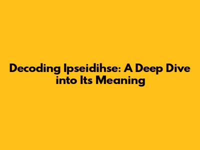 Unraveling The Mystery: What Does Ipseidihse Mean?