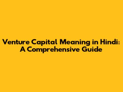 Venture Capital In Hindi: A Complete Guide